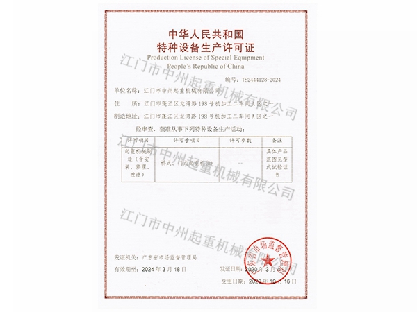 您好,歡迎進入江門市中州起重機械有限公司官網!